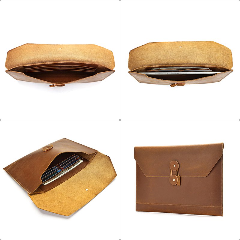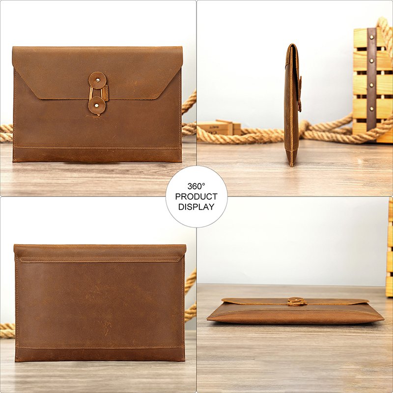 The effect of the leather envelope bag held in the model’s hand clearly shows the bag’s size. Made of high-quality leather, it exudes a rich, premium texture, allowing it to stand out among numerous commuters and office workers.